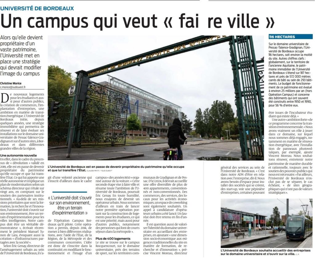 Ces travaux intéressant directement Pessac, Gradignan et Talence pour les communes comme les universités pour l’Etat sont d’un réel intérêt communautaire pour un Campus récemment qualifié « en état d’abandon» par un hebdomadaire.
