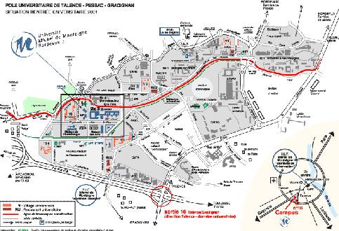 – sur Pessac et à la limite de Talence en emprise principalement sur le domaine universitaire raccordant Villemejean avec Pey Berland et l’accès à la piscine, aux terrains de sports, au CREPS…