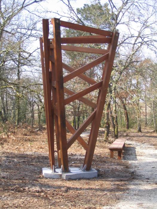 - les ouvrages en bois (passerelles, ponts, signaux et estrades. La mise en place des trois belvédères 13 m et 18 m) a pris du retard pour des raisons techniques : la ville a demandé des garanties au maître d’oeuvre qui a utilisé une technique expérimentale d’assemblage par goujons collés. Ils seront construits de mai à juillet 2005 ;